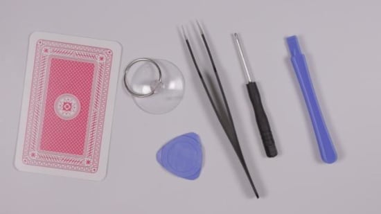 Bitte das Handy ausschalten bevor es mit der Reparatur losgeht. Für diese Reparatur benötigst Du einen Fön (bis 60 Grad), einen Plektrum, einen Plastikhebel, eine Pinzette, einen Spudger, einen Saugnapf und einen Kreuzschraubenzieher.